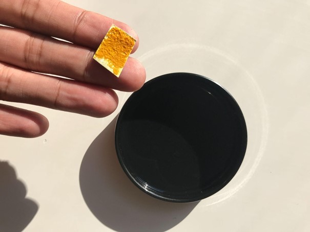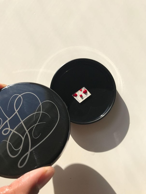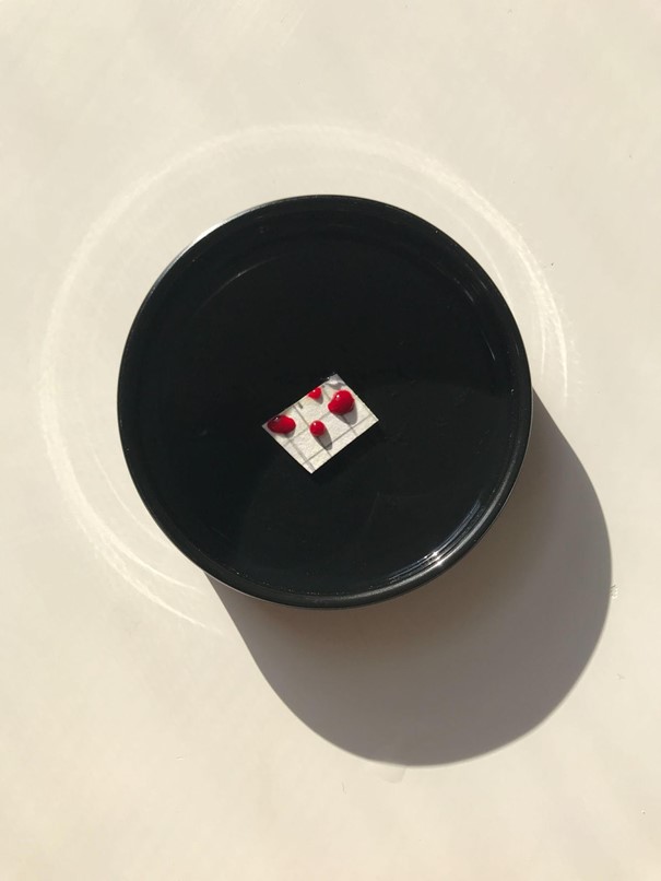 Step 2: Collect a few drops of your own saliva or blood, the water of life. I have prepared a lancet, which is a leftover object from a previous food allergies test I performed called “At-Home Food Sensitivity Test” and provided by a laboratory called Everlywell. In a sense, it is another bioart performance by post, though admittedly more invasive (not only physically, but in terms of data health privacy). I am mentally preparing to give a part of myself to this organism, a piece of my blood. I pierce the tip of my left annular finger. I forgot to warm up so the blood is not flowing as rapidly as I imagined. I am forced to soak the back of the paper holding the slime mold with my blood. I place 4 full droplets. Done.